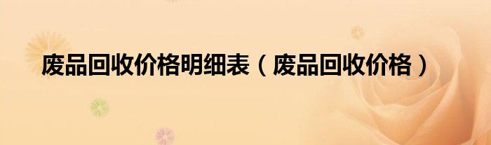 大家好,今天小六子来为大家解答以下的问题,关于废品回收价格明细表,废品回收价格这个很多人还不知道,现在让我们一起来看看吧!