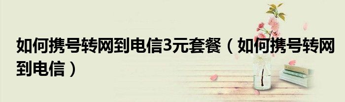 如何携号转网到电信3元套餐(如何携号转网到电信)