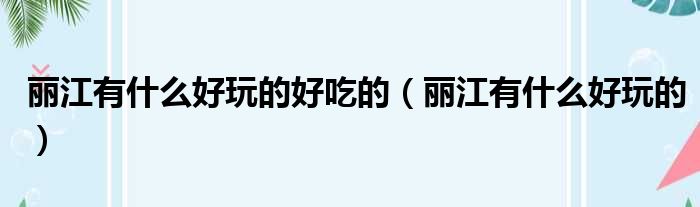 丽江有什么好玩的好吃的(丽江有什么好玩的)