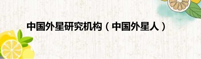 中国外星研究机构(中国外星人)