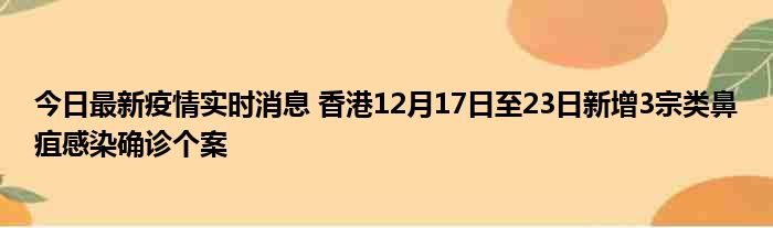 今日最新疫情实时消息 香港12月17日至23日新增3宗类鼻疽感染确诊个案