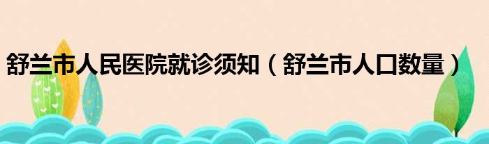 导读 大家好,今天小六子来为大家解答以下的问题,关于舒兰市人民医院就诊须知,舒兰市人口数量这个很多人还不知道,现在让我们一起来看看吧!1、