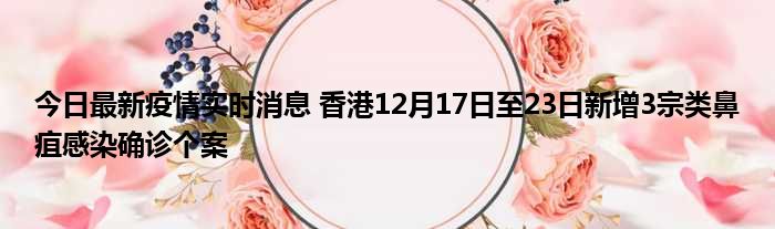 今日最新疫情实时消息 香港12月17日至23日新增3宗类鼻疽感染确诊个案