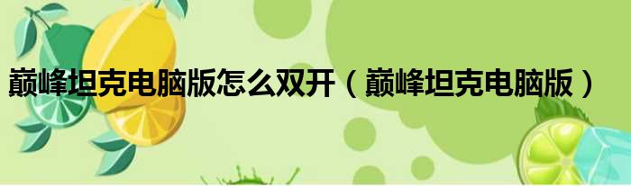 巅峰坦克电脑版怎么双开(巅峰坦克电脑版)