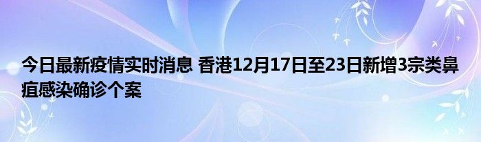 今日最新疫情实时消息 香港12月17日至23日新增3宗类鼻疽感染确诊个案