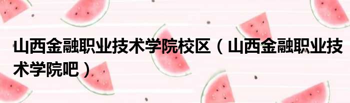 山西金融职业技术学院校区(山西金融职业技术学院吧)