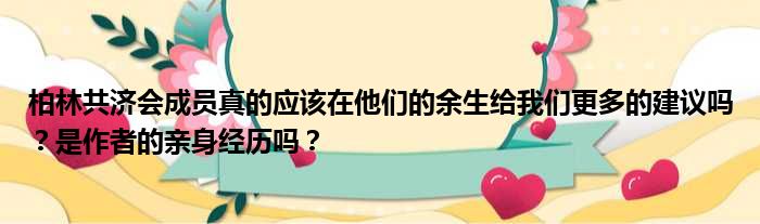 柏林共济会成员真的应该在他们的余生给我们更多的建议吗?是作者的亲身经历吗?