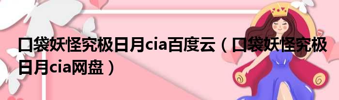 大家好,今天小六子来为大家解答以下的问题,关于口袋妖怪究极日月cia百度云,口袋妖怪究极日月cia网盘这个很多人还不知道,现在让我们一起来看看吧!