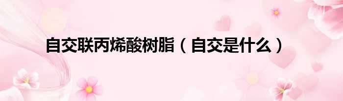 大家好,今天小六子来为大家解答以下的问题,关于自交联丙烯酸树脂,自交是什么这个很多人还不知道,现在让我们一起来看看吧!