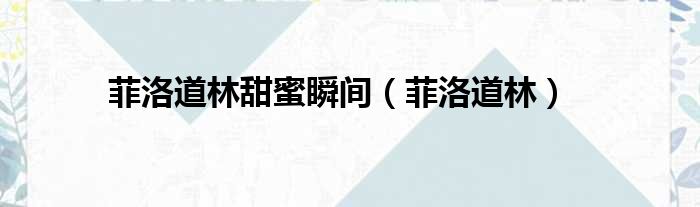 大家好,今天小六子来为大家解答以下的问题,关于菲洛道林甜蜜瞬间,菲洛道林这个很多人还不知道,现在让我们一起来看看吧!