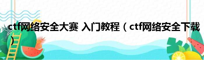 ctf网络安全大赛 入门教程(ctf网络安全下载)