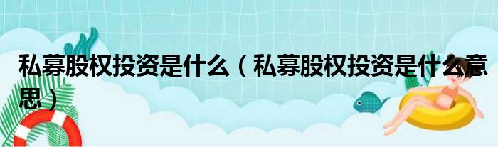 导读 大家好,今天小六子来为大家解答以下的问题,关于私募股权投资是什么,私募股权投资是什么意思这个很多人还不知道,现在让我们一起来看看吧