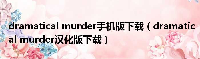导读 大家好,今天小六子来为大家解答以下的问题,关于dramatical murder手机版下载,dramatical murder汉化版下载这个很多人还不知道,现在让