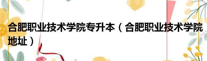 导读 大家好,今天小六子来为大家解答以下的问题,关于合肥职业技术学院专升本,合肥职业技术学院地址这个很多人还不知道,现在让我们一起来看看