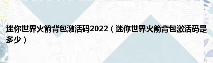 迷你世界火箭背包激活码2022(迷你世界火箭背包激活码是多少)