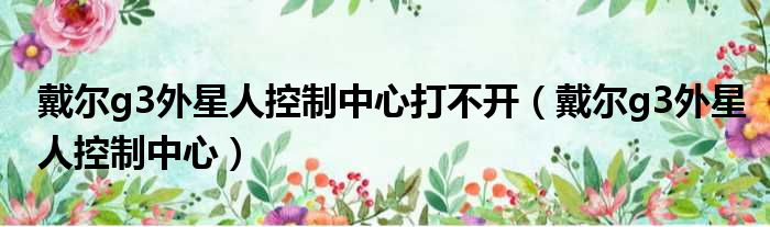 戴尔g3外星人控制中心打不开(戴尔g3外星人控制中心)