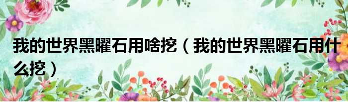 我的世界黑曜石用啥挖(我的世界黑曜石用什么挖)
