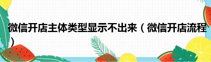 微信开店主体类型显示不出来(微信开店流程)