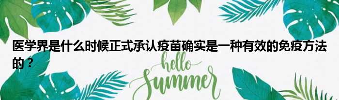 导读 大家好,今天小六子来为大家解答以下的问题,关于医学界是什么时候正式承认疫苗确实是一种有效的免疫方法的?这个很多人还不知道,现在让我