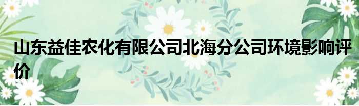 导读 大家好,今天小六子来为大家解答以下的问题,关于山东益佳农化有限公司北海分公司环境影响评价这个很多人还不知道,现在让我们一起来看看吧