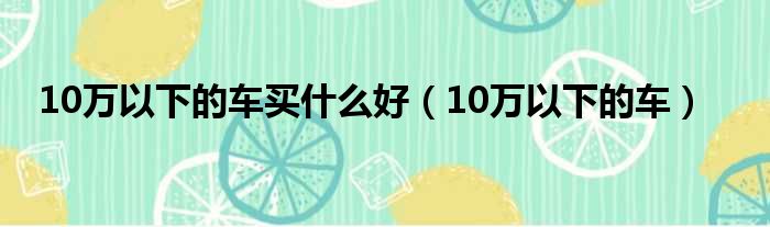 1、十万以下的车有本田飞度、吉利缤越、广汽传祺GS4、吉利博越等,比较推荐吉利博越这款车,这款车空间大,动力足,不管家用还是外出都是很实用的一款。
