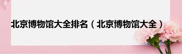 导读 大家好,今天小六子来为大家解答以下的问题,关于北京博物馆大全排名,北京博物馆大全这个很多人还不知道,现在让我们一起来看看吧!1、北京