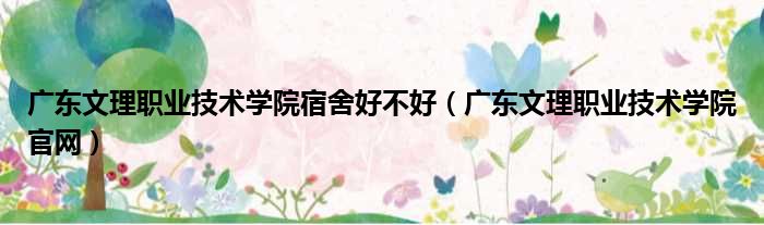 广东文理职业技术学院宿舍好不好(广东文理职业技术学院官网)