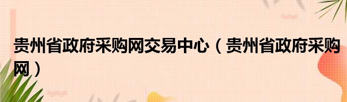 贵州省政府采购网交易中心(贵州省政府采购网)