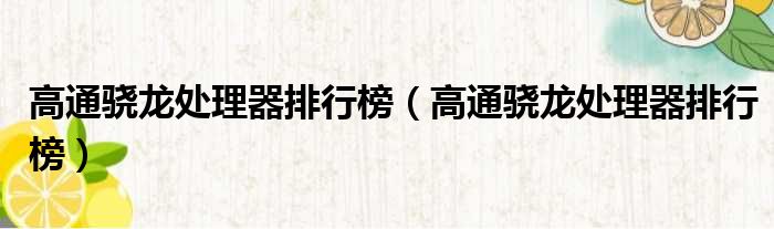 高通骁龙处理器排行榜(高通骁龙处理器排行榜)