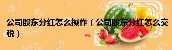 公司股东分红怎么操作(公司股东分红怎么交税)
