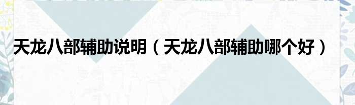 天龙八部辅助说明(天龙八部辅助哪个好)