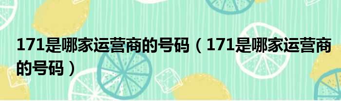 171是哪家运营商的号码(171是哪家运营商的号码)