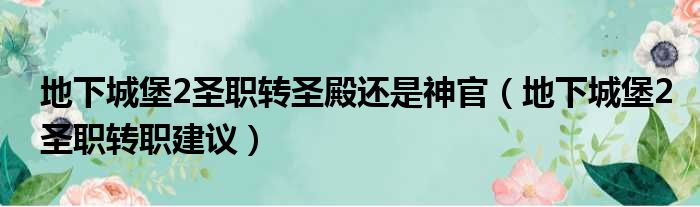 导读 大家好,今天小六子来为大家解答以下的问题,关于地下城堡2圣职转圣殿还是神官,地下城堡2圣职转职建议这个很多人还不知道,现在让我们一起