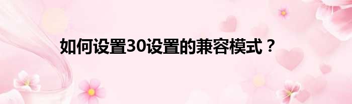 大家好,今天小六子来为大家解答以下的问题,关于如何设置30设置的兼容模式?这个很多人还不知道,现在让我们一起来看看吧!