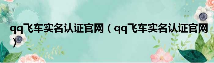 qq飞车实名认证官网(qq飞车实名认证官网)