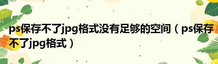 ps保存不了jpg格式没有足够的空间(ps保存不了jpg格式)