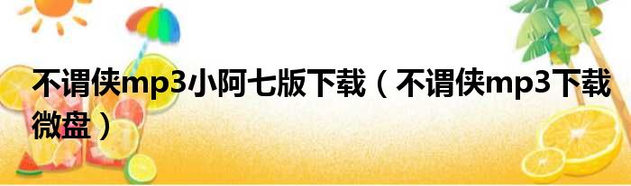 导读 大家好,今天小六子来为大家解答以下的问题,关于不谓侠mp3小阿七版下载,不谓侠mp3下载微盘这个很多人还不知道,现在让我们一起来看看吧!1