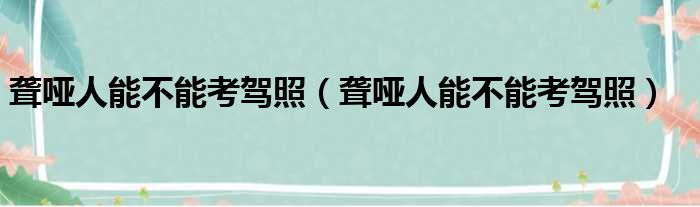 聋哑人能不能考驾照(聋哑人能不能考驾照)