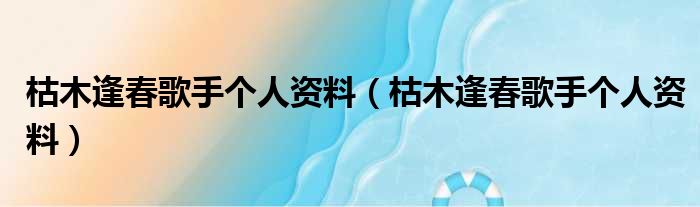 枯木逢春歌手个人资料(枯木逢春歌手个人资料)