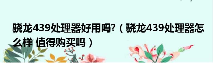 骁龙439处理器好用吗?(骁龙439处理器怎么样 值得购买吗)