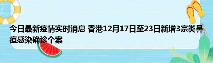 今日最新疫情实时消息 香港12月17日至23日新增3宗类鼻疽感染确诊个案