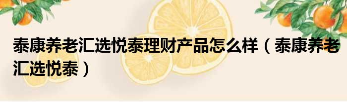 泰康养老汇选悦泰理财产品怎么样(泰康养老汇选悦泰)