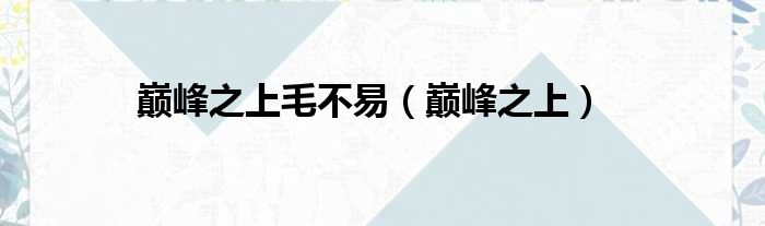 导读 大家好,今天小六子来为大家解答以下的问题,关于巅峰之上毛不易,巅峰之上这个很多人还不知道,现在让我们一起来看看吧!1、巅峰之上mp3高