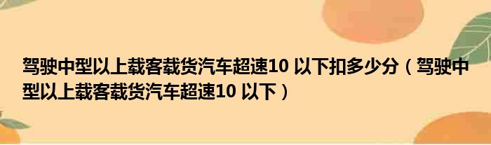 驾驶中型以上载客载货汽车超速10 以下扣多少分(驾驶中型以上载客载货汽车超速10 以下)