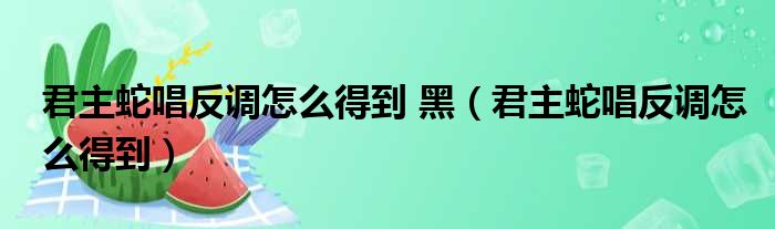 君主蛇唱反调怎么得到 黑(君主蛇唱反调怎么得到)