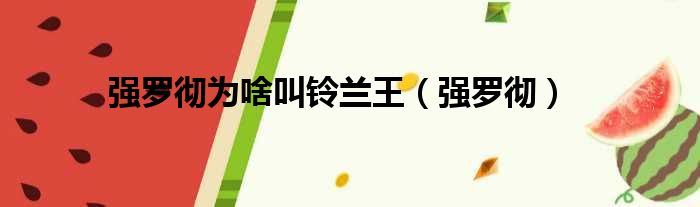 导读 大家好,今天小六子来为大家解答以下的问题,关于强罗彻为啥叫铃兰王,强罗彻这个很多人还不知道,现在让我们一起来看看吧!1、我来回答你这
