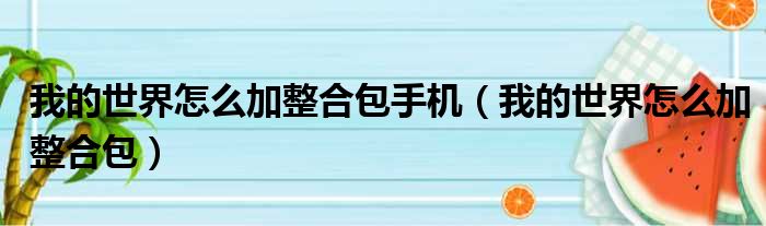 我的世界怎么加整合包手机(我的世界怎么加整合包)