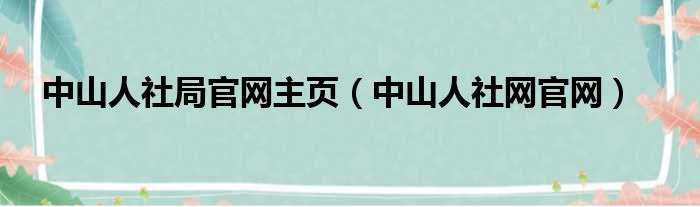 中山人社局官网主页(中山人社网官网)