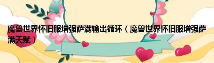 魔兽世界怀旧服增强萨满输出循环(魔兽世界怀旧服增强萨满天赋)