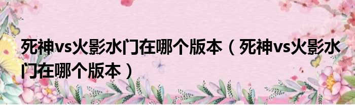 死神vs火影水门在哪个版本(死神vs火影水门在哪个版本)